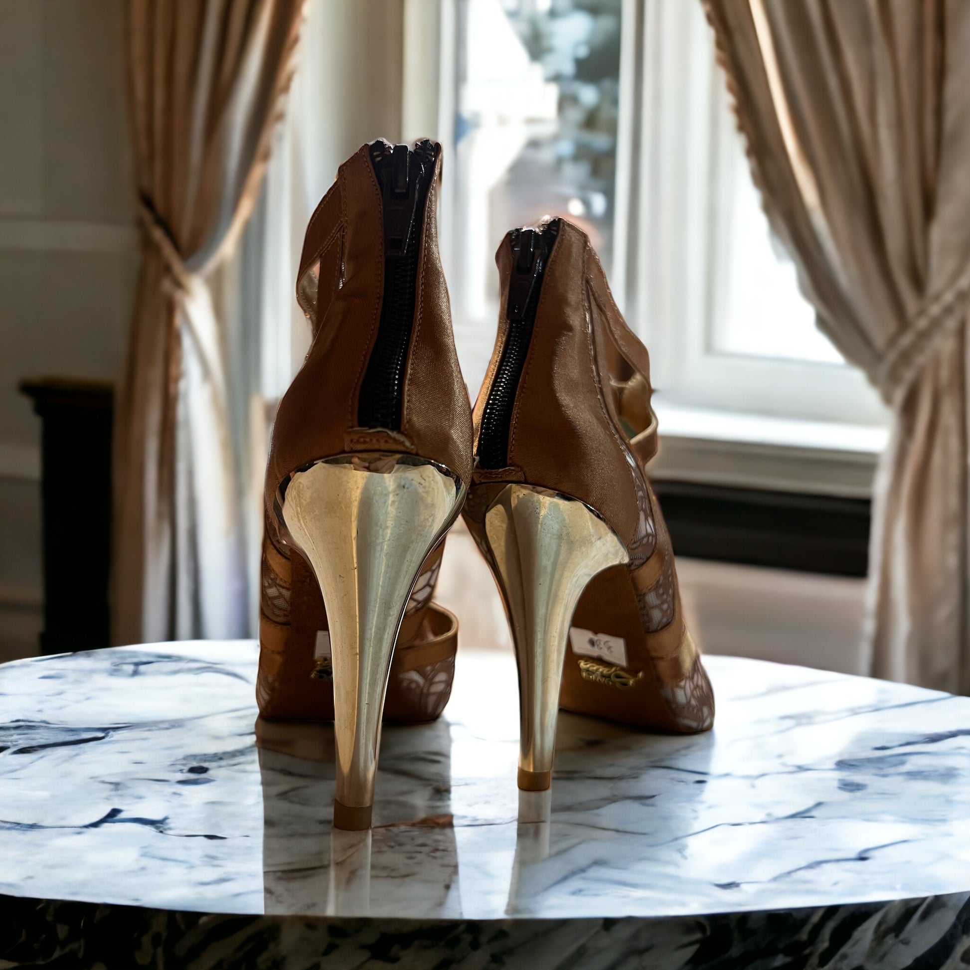 Lyra Tan Lace 3.5" Gold Heel